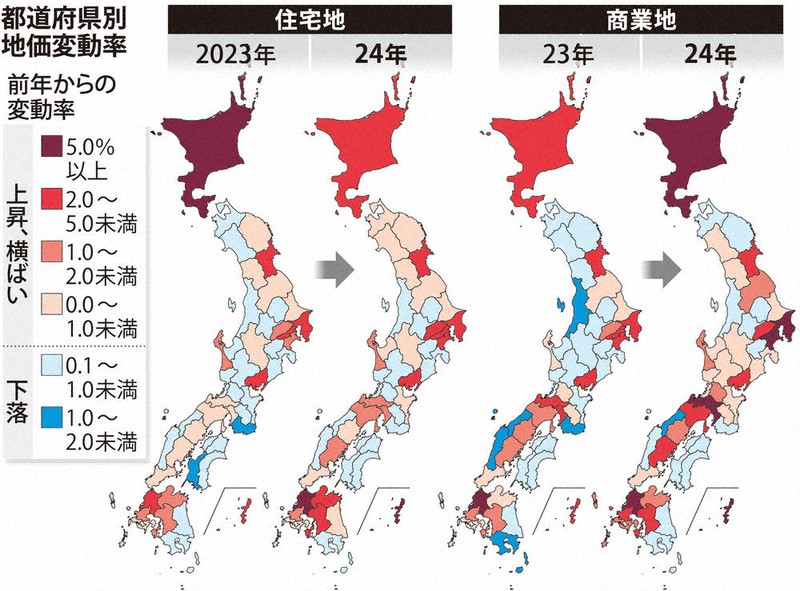 基準地価の対象は都市計画区域内と都市計画区域外の両方です。対象となる地点(基準地)は宅地が2万1168地点、林地が507地点です。