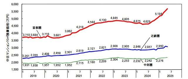 ~中部圏は前期比+3.1%の2,346万円で微増