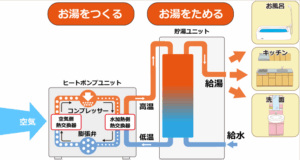 - 夜間安価電力を利用することは給湯、暖房面で節約が可能